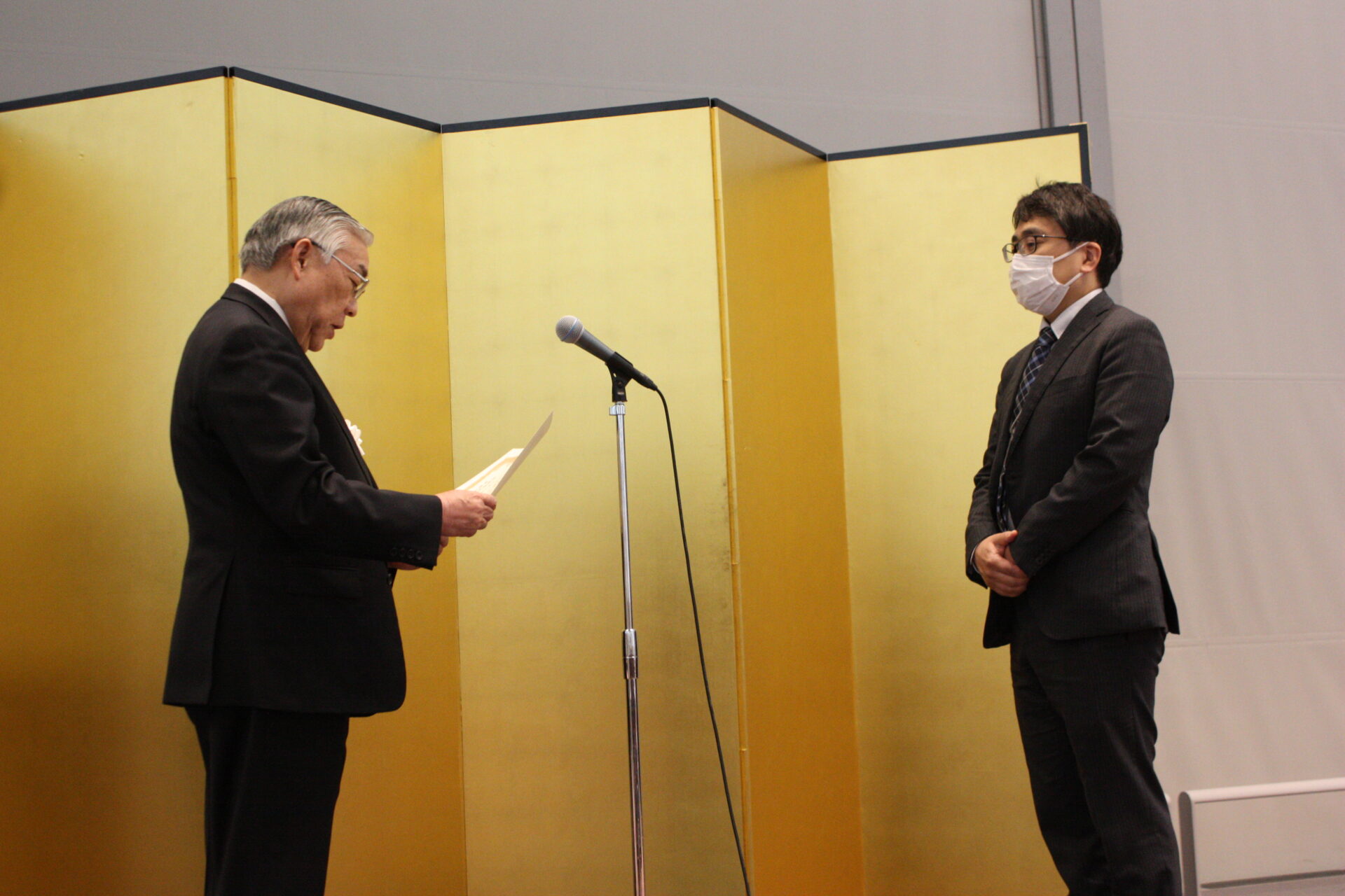 橋本常務理事のあいさつの後、2005年の第1回就職フェアから毎回欠かさず参加してくださっている事業所の代表者に、感謝状が贈呈されました。20回連続でご出展いただいたのは以下の10事業所です。