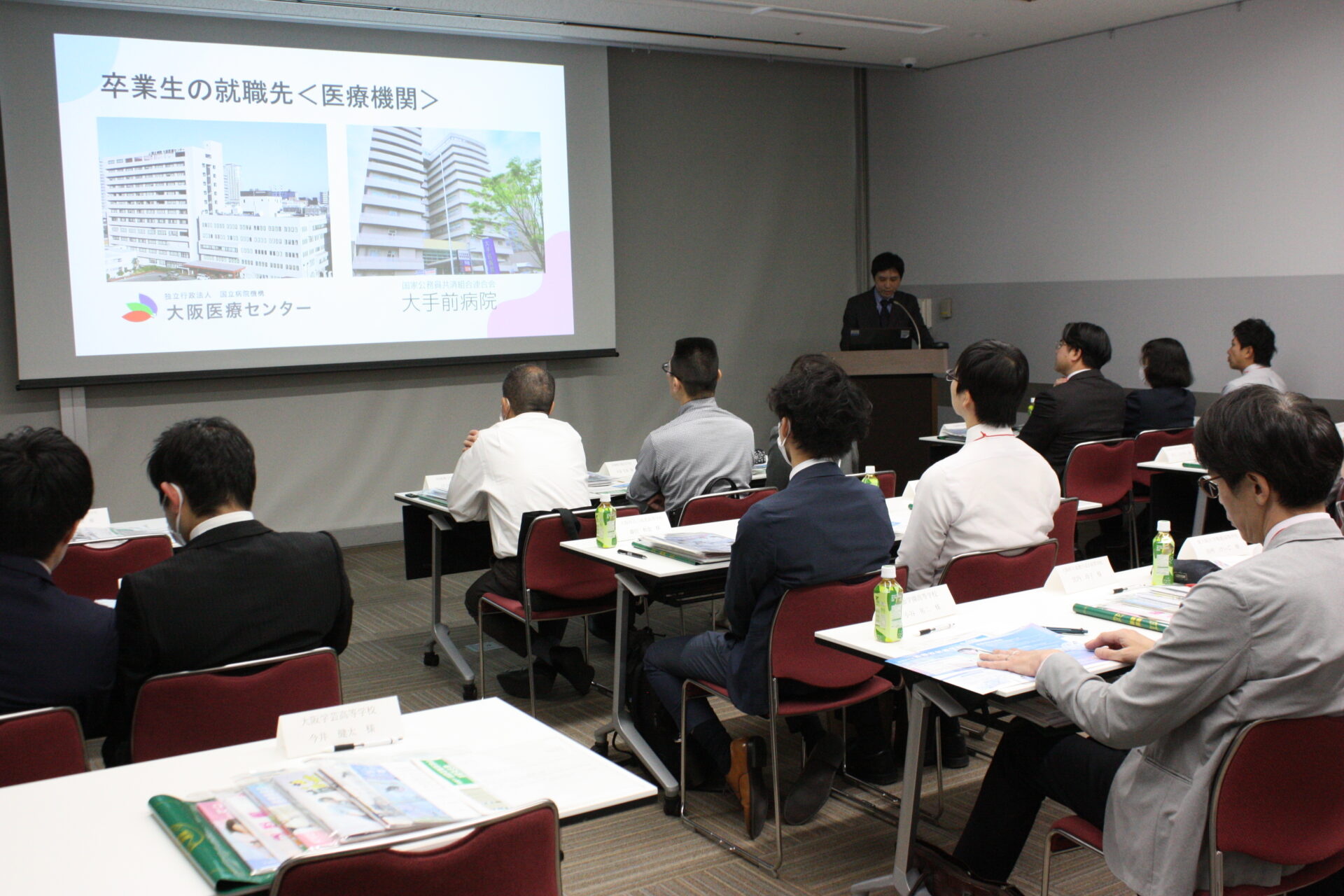 グランキューブ大阪の別のフロアでは、高等学校の教員を対象にしたセミナーがありました。看護・医療の業界事情を伝えるセミナーや、専門学校における入試制度の紹介、就職フェアの見学会などが行われ、大阪滋慶学園の専門学校と高校との連携・交流を深めていました。