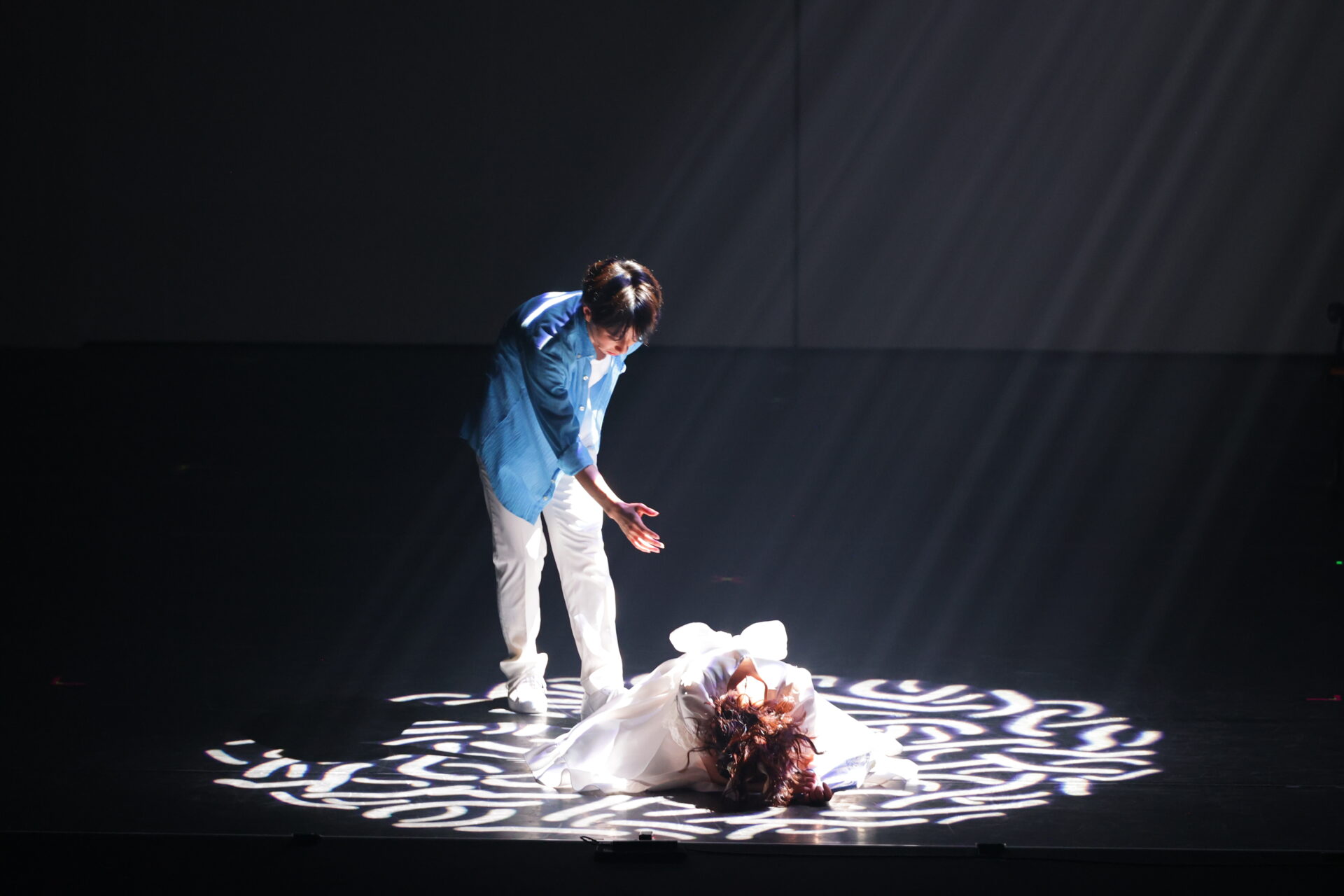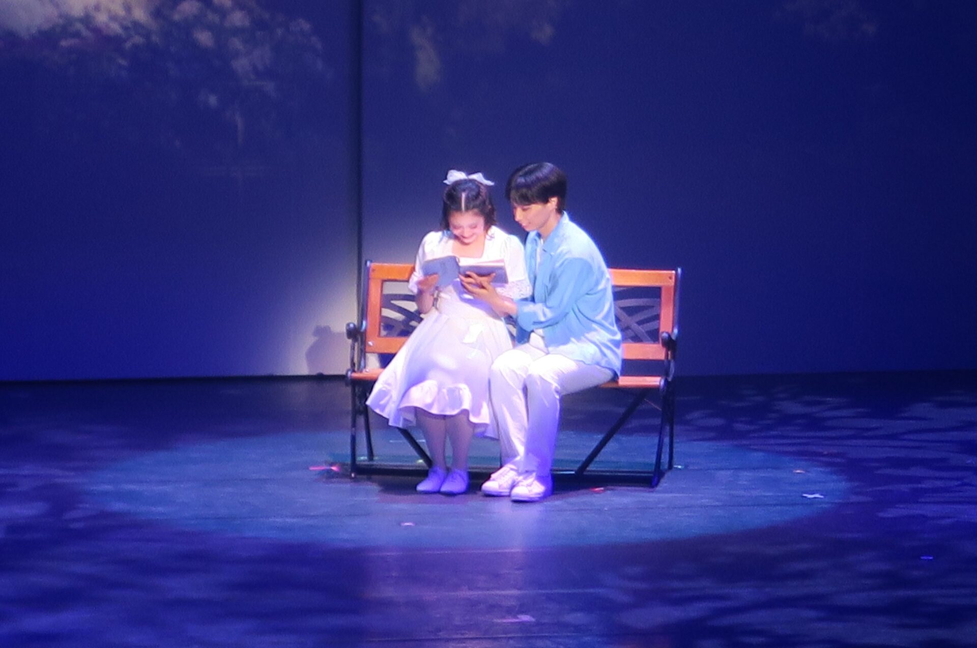 ミュージカルスターを目指す主人公・ゆかりのライバル・遥が白血病に侵され、2人が葛藤する姿を通して、骨髄移植で助かる命があることを伝える物語。万博のテーマ「いのち輝く未来社会のデザイン」にも通じるメッセージを世界へ向け発信しました。