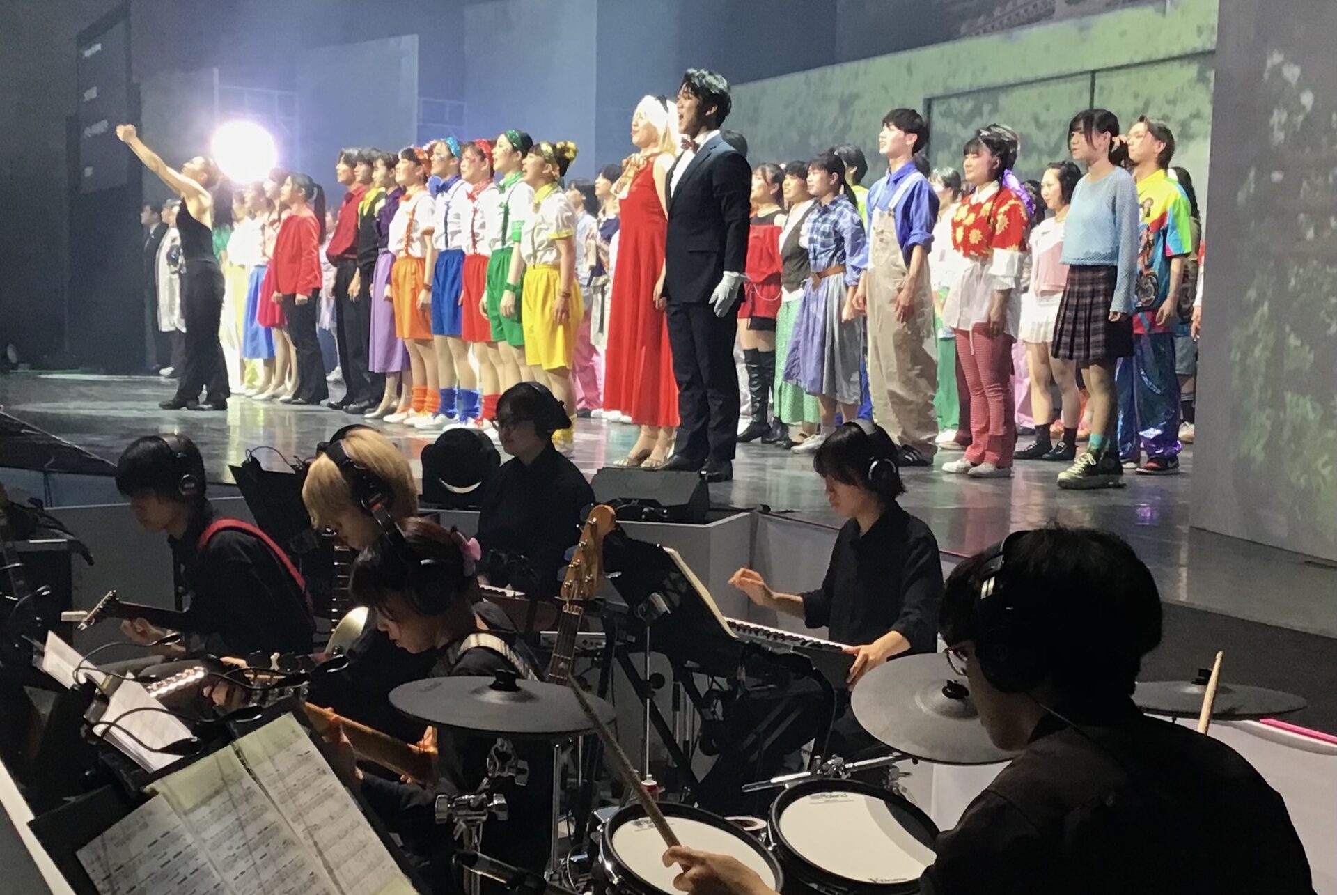 今回の万博公演には大阪スクールオブミュージック専門学校、大阪ダンス・俳優&舞台芸術専門学校、大阪スクールオブミュージック高等専修学校を中心に、姉妹校の東京スクールオブミュージック&ダンス専門学校、東京スクールオブミュージック専門学校 渋谷、東京ダンス・俳優&舞台芸術専門学校の学生も加わり、総勢227人でつくり上げました。当日、公演は午後2時と午後6時の計2回行われ、計約2700人の観客が詰めかけました。