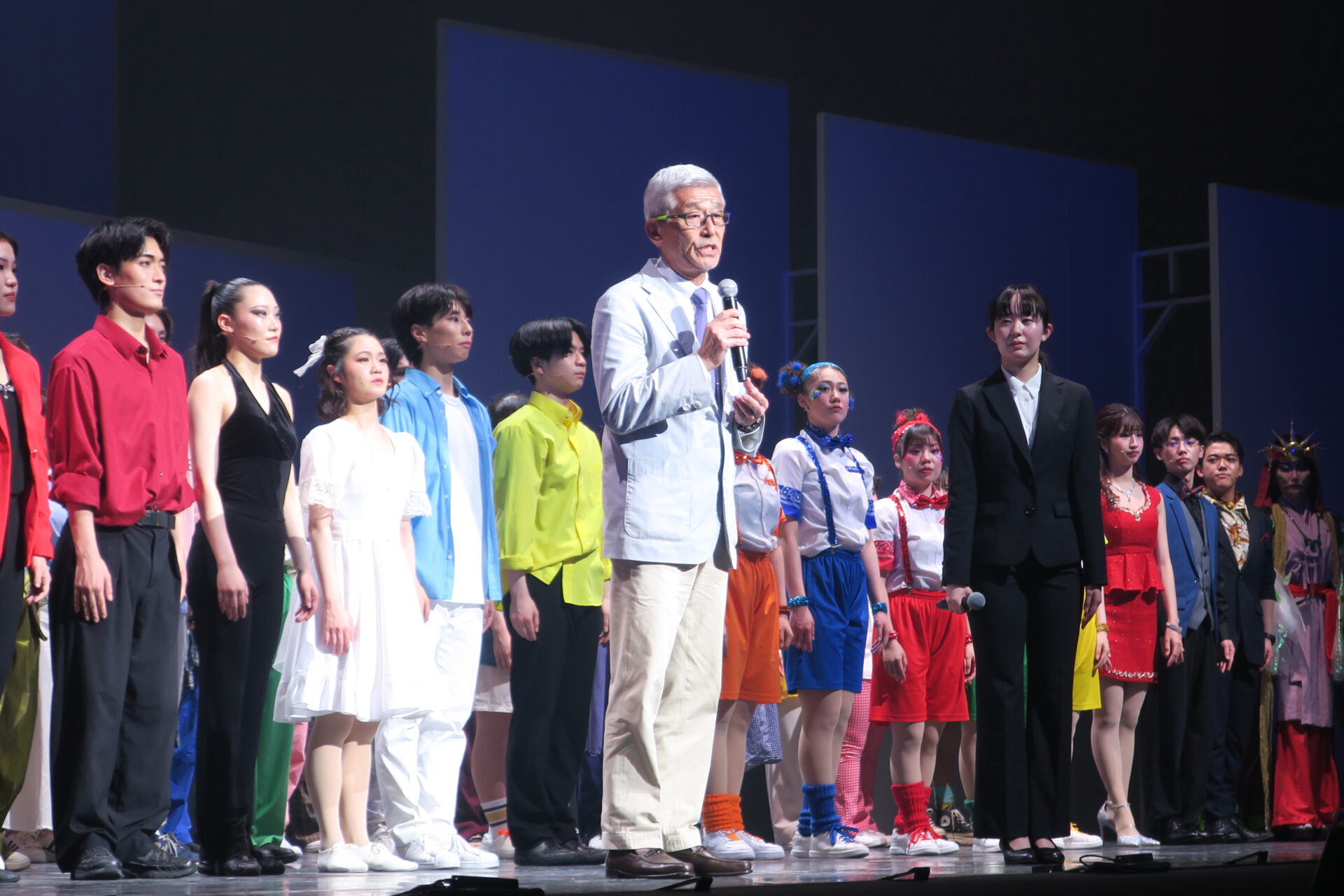 この日の公演では、セリフや歌詞などの字幕を万博らしく4カ国語でスクリーンに映し出したほか、万博で話題の「空飛ぶクルマ」を取り入れたセリフも飛び出し、会場を盛り上げました。また、急性骨髄性白血病を患い、昭和60年に27歳の若さで亡くなった女優、夏目雅子さんの兄、小達一雄さんも舞台上に登場。「白血病は、ドナーに巡り合えれば治る病気になりました」とドナー登録への理解を求めました。